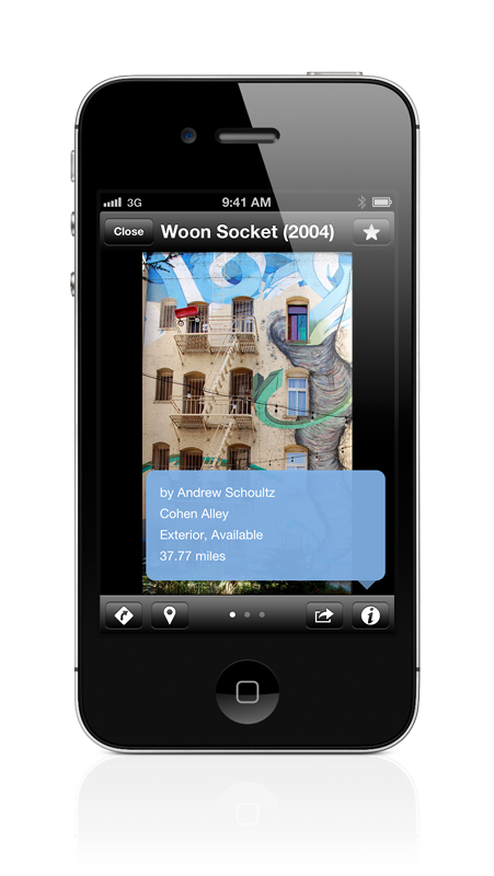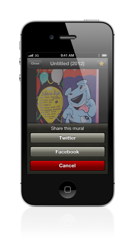 This screen lets you view the mural images by swiping them left and right. Tapping the star button adds or removes (when highlighted) the mural from your Favorites list.