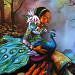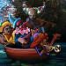 The mural features whimsical characters in some sort of enchanted forest. There’s a boat full of what appear to be Venetian musicians, an arc of rainbow-colored birds, and two forlorn-looking women, one of whom holds a peacock. More...
